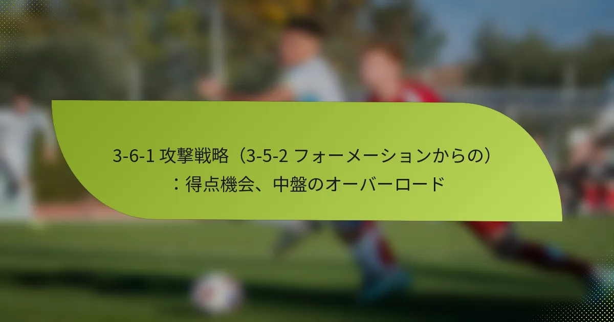 サッカーにおける3-6-1オフェンシブ戦略は、中盤の支配を強調しつつ、堅固な守備構造を維持します。このフォーメーションは、コンパクトな中盤と孤立したストライカーを通じて、多くの得点機会を創出し、ボール保持とゲームのコントロールを最大化します。