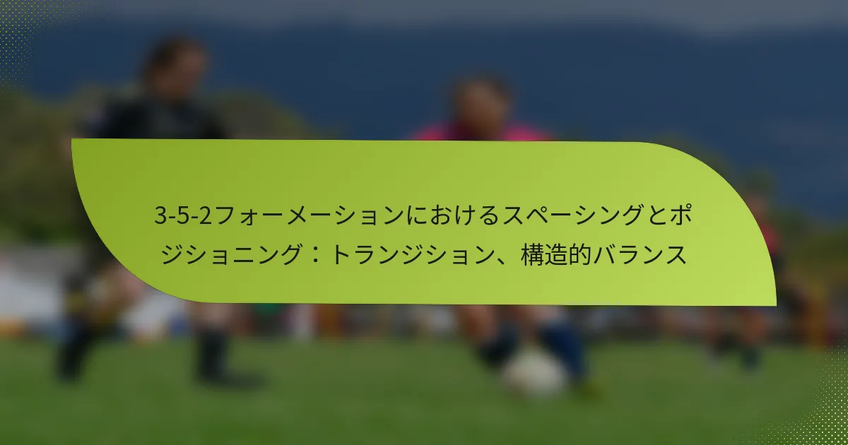 サッカーにおける3-5-2フォーメーションは、3人のディフェンダー、5人のミッドフィールダー、2人のフォワードを配置した戦術的なセットアップであり、中盤のコントロールと適応性に重点を置いています。このフォーメーションでは、効果的なスペーシングとポジショニングが構造的なバランスを維持し、チームワークを強化し、攻撃と守備のフェーズ間のスムーズな移行を促進するために不可欠です。