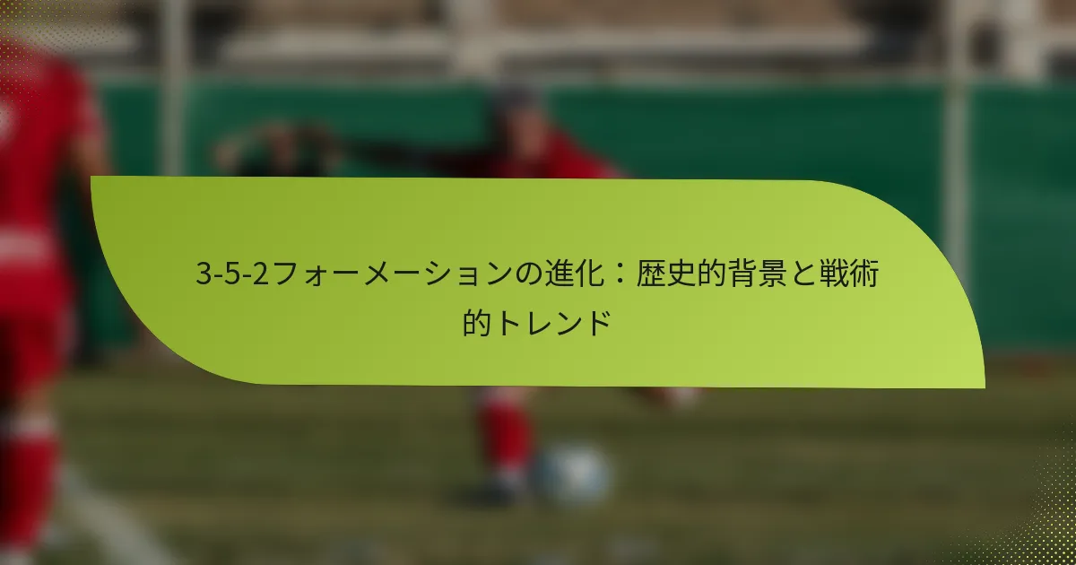 サッカーにおける3-5-2フォーメーションは、3人のディフェンダー、5人のミッドフィールダー、2人のフォワードを配置した戦術的なセットアップです。このフォーメーションは中盤のコントロールを強調し、攻撃と守備の状況に効果的に適応できます。